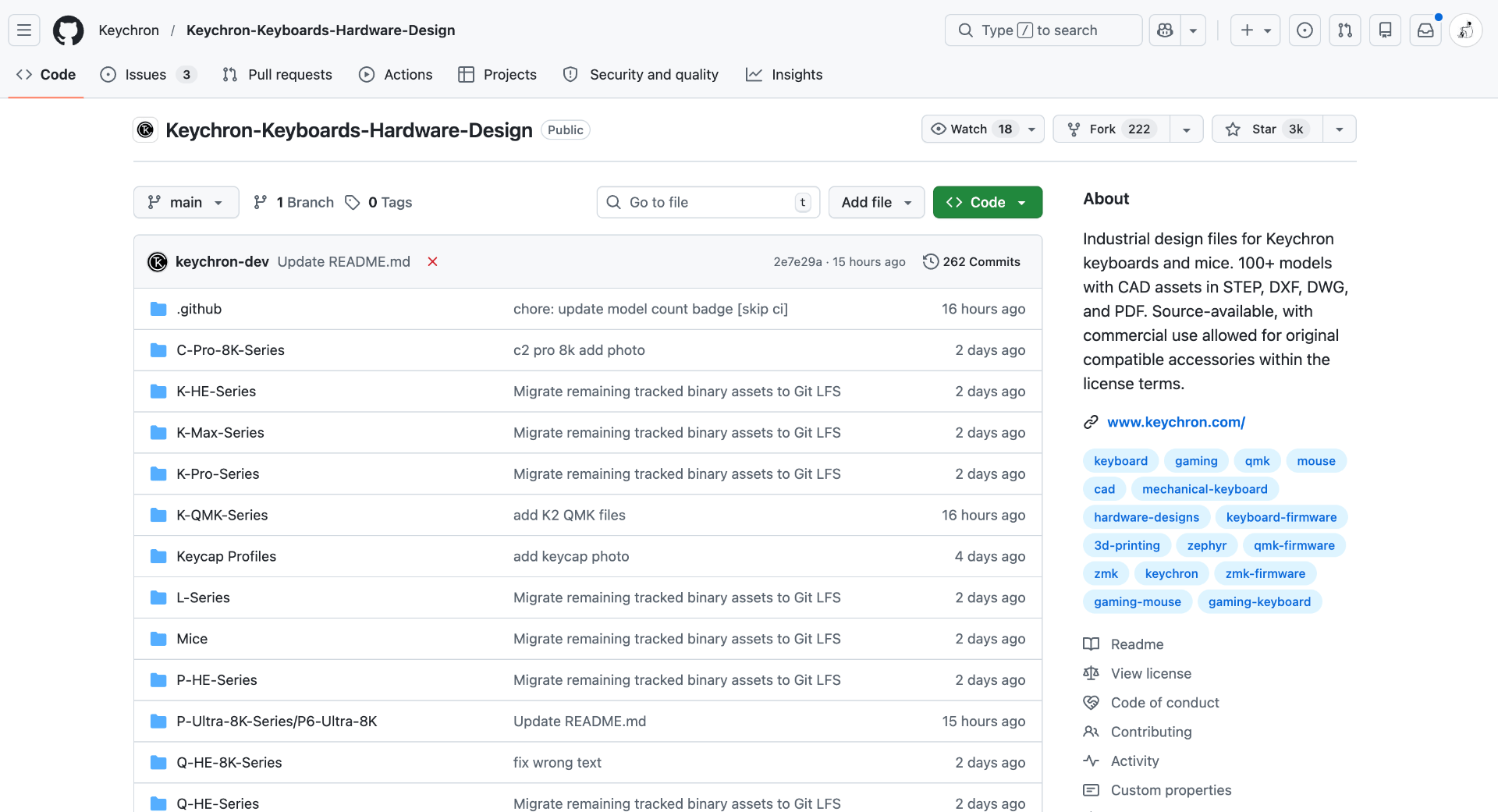 Keychron 把旗下 83 款键盘和鼠标的工业设计文件全部放上了 GitHub,格式是 STEP 和 DXF,Fusion 360、FreeCAD、SolidWorks 都能直接打开编辑。