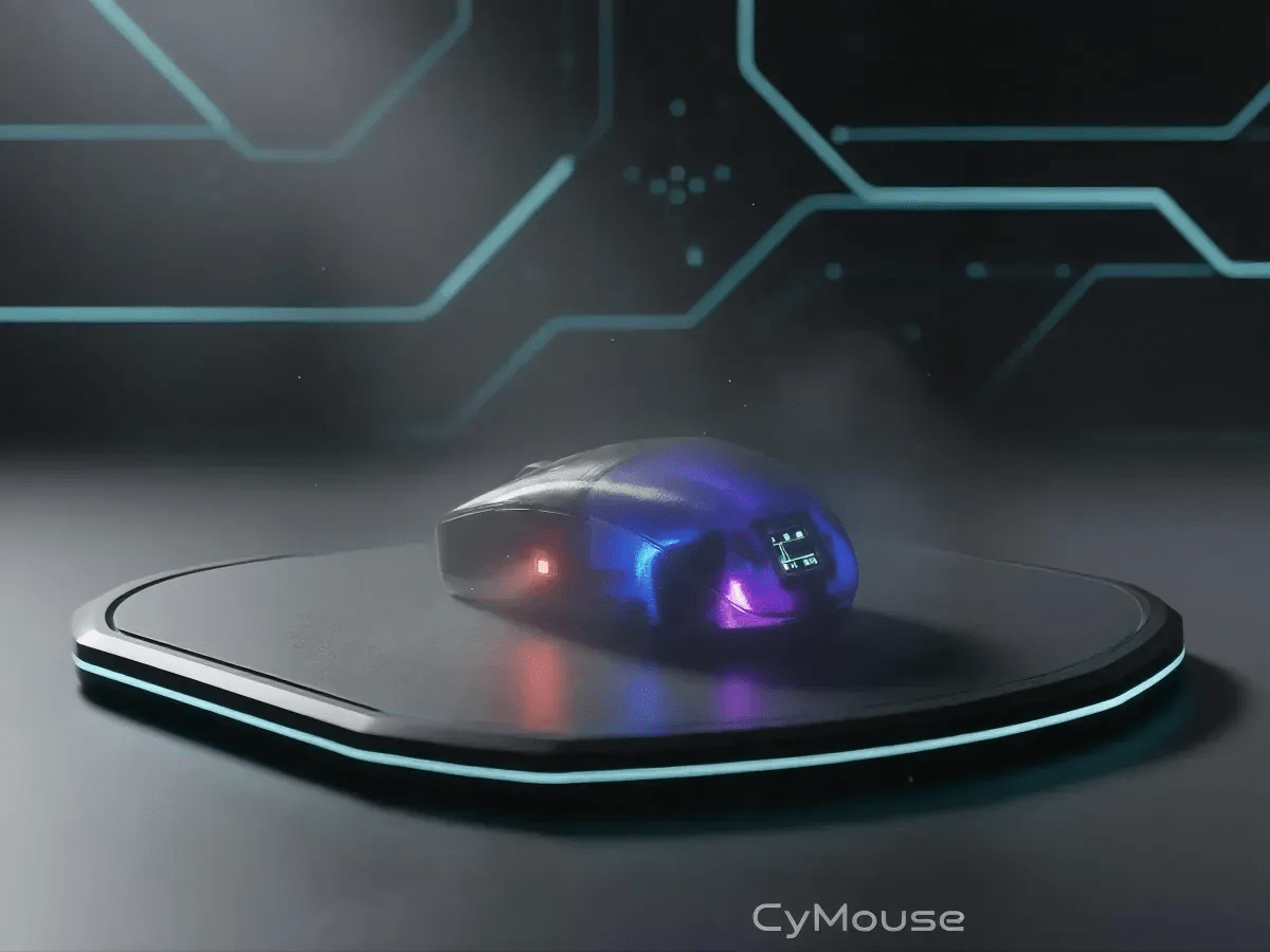 鼠标是我们每天接触时间最长的外设,拿它来顺便监测健康数据,想法挺自然的。CyMouse 就是这么做的:主控 ESP32-S3,传感器用 PAW3395(游戏鼠标级别),同时集成了 PPG 血氧和心率传感芯片,鼠标上还有一块小屏幕显示实时数据。